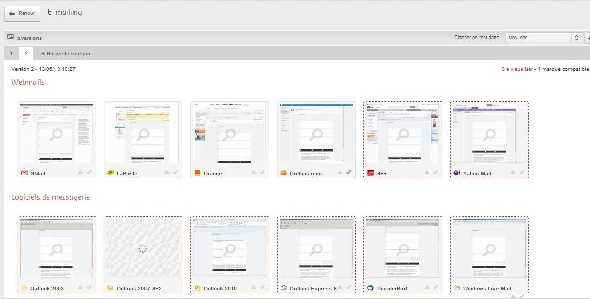 Getinbox est un véritable tableau de bord ergonomique, son utilisation est très simple grâce à une interface intuitive.Les différentes étapes de tests visuels s’enchaînent donc rapidement :
