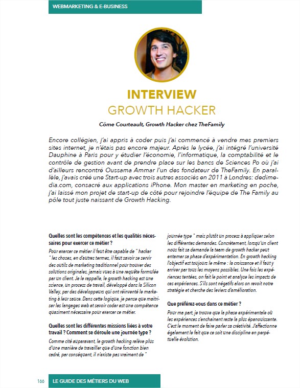 Ainsi et à titre d’exemple, nous découvrons le travail de Growth Hacker en compagnie de Côme Courteault, Head of Growth chez TheFamily.
